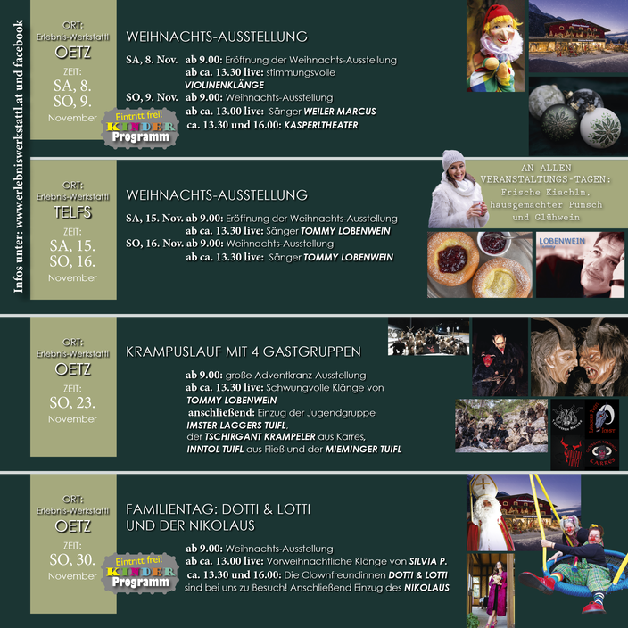 Informieren sie sich über aktuelle Events und Aktionen im Erlebnis-Werkstattl.